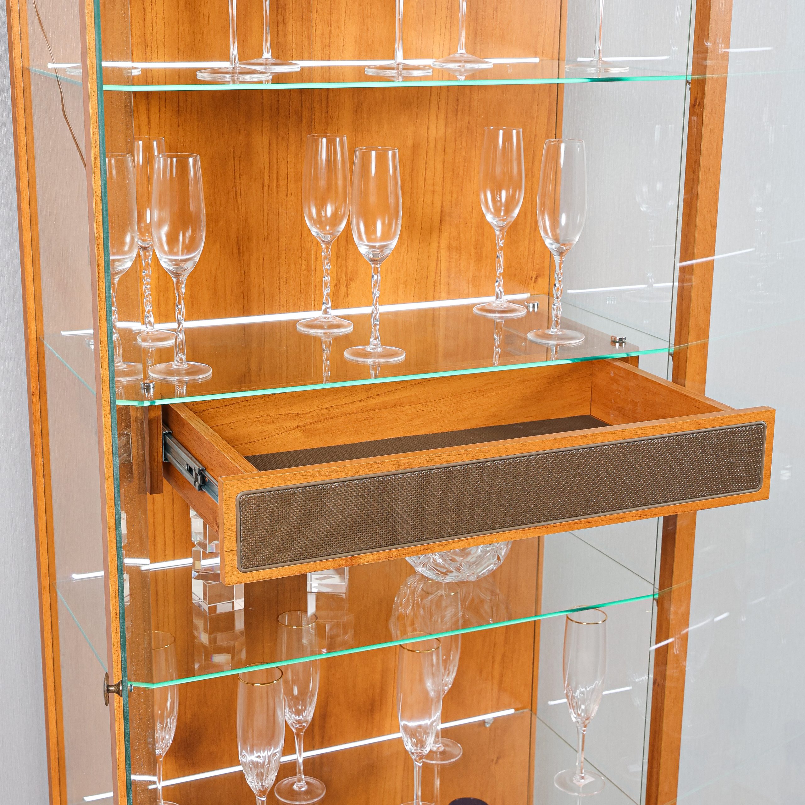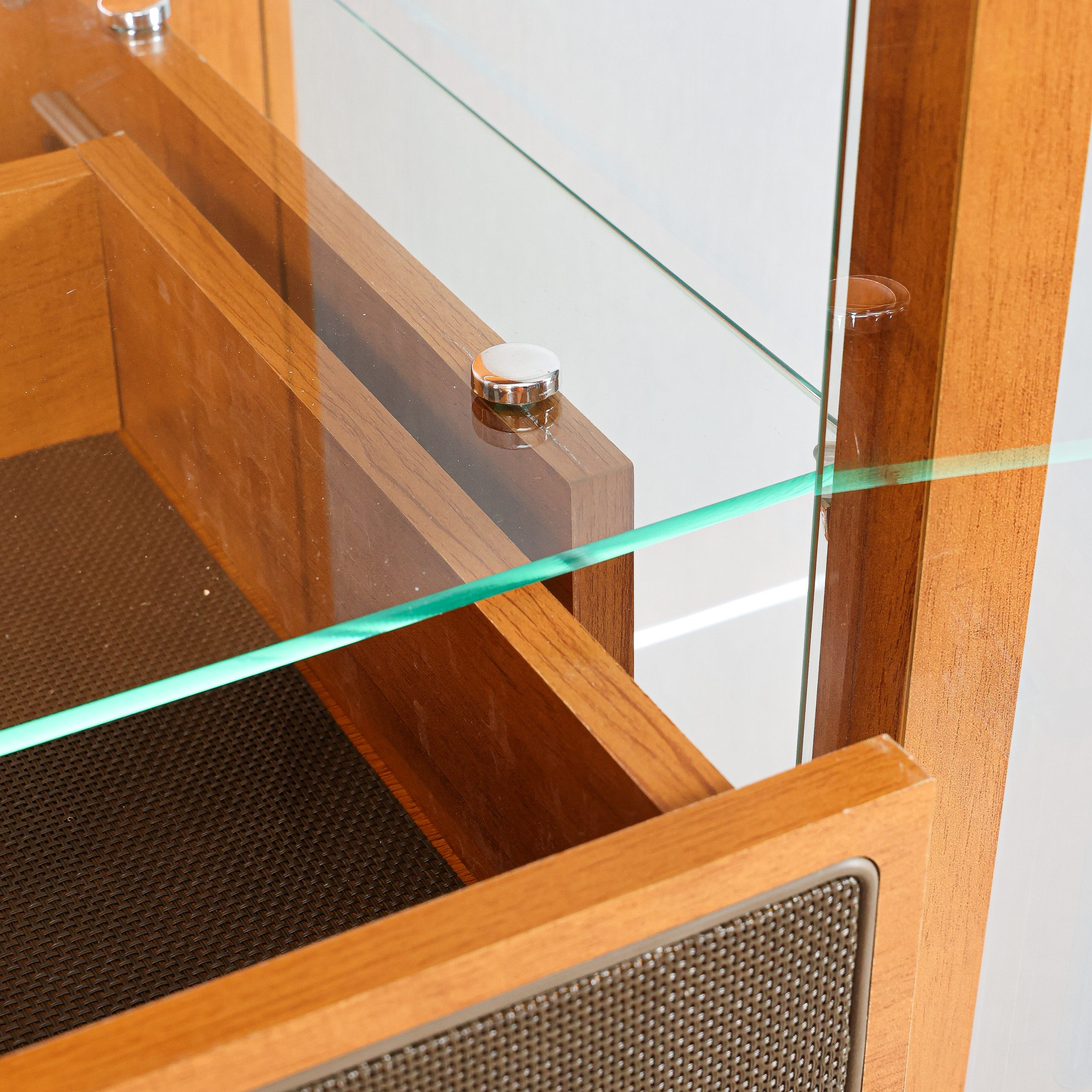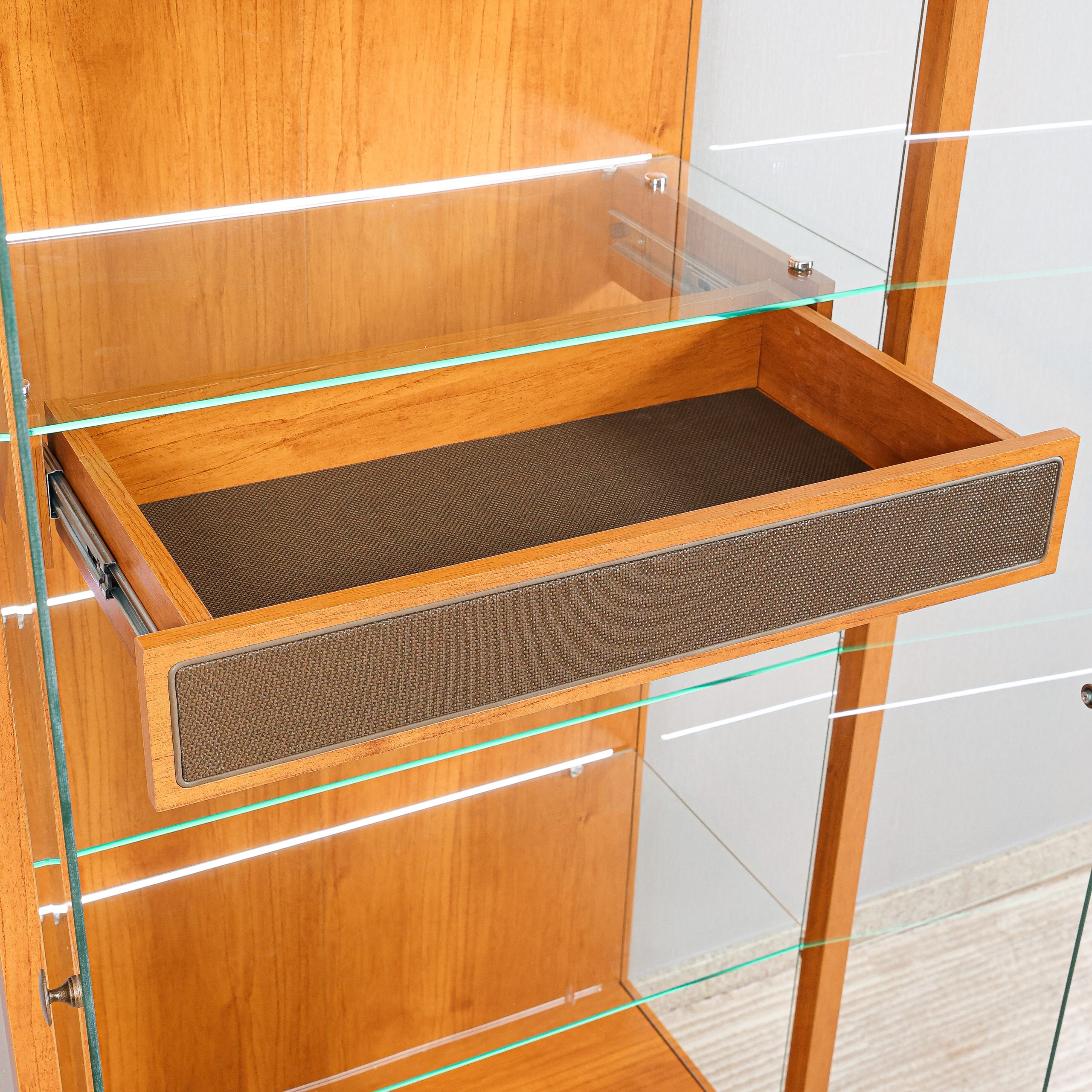 - Tela sintética aplicada sobreposta na gaveta