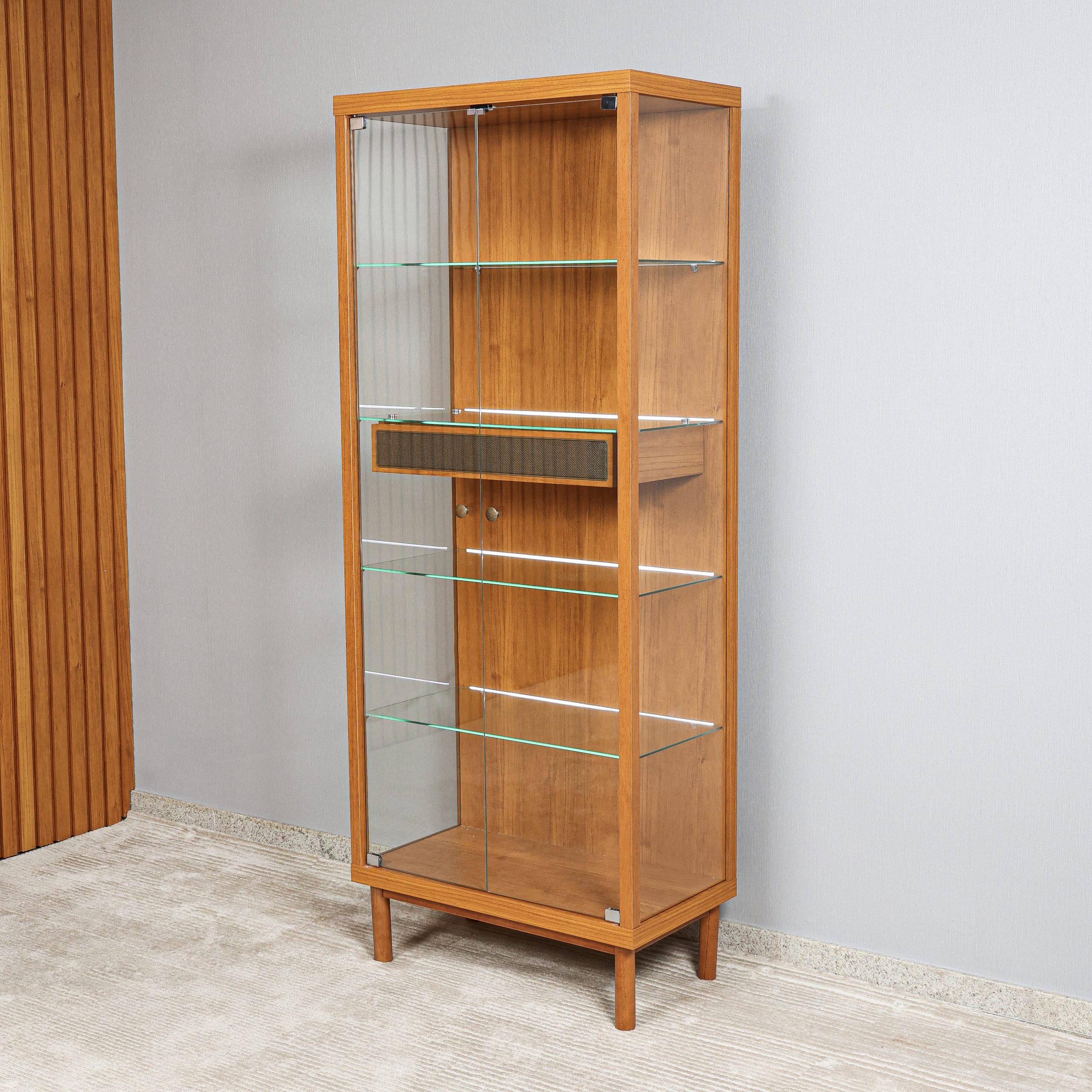 - Neon aplicado atrás das prateleiras de vidro