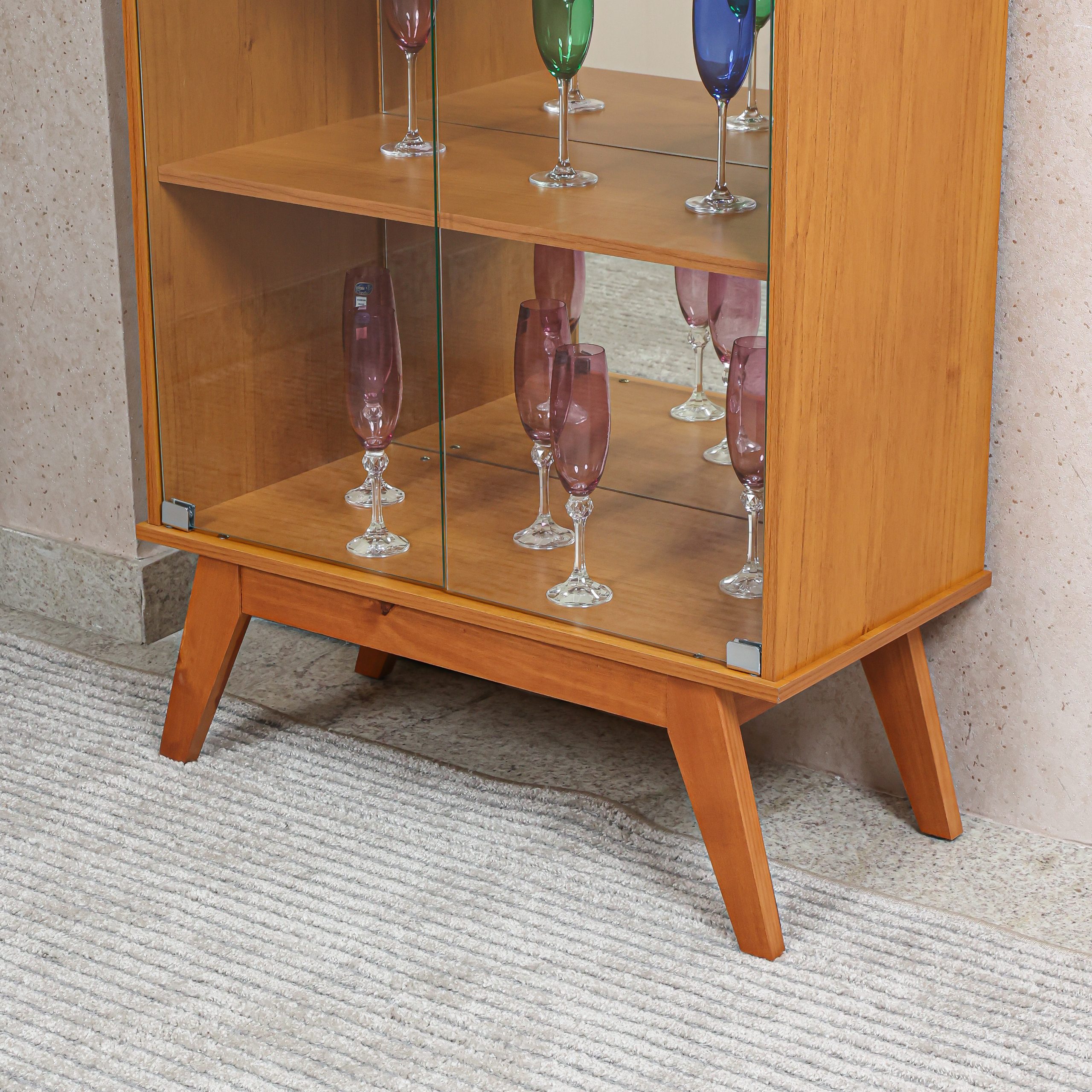 - Pés em madeira maciça com sapatas protetoras