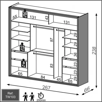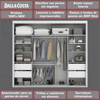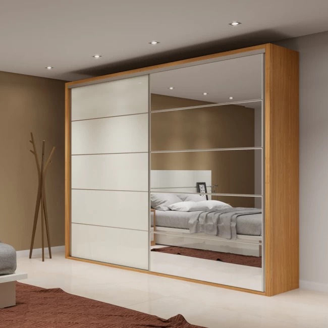 GUARDA ROUPA TW 503 FREIJO/OFF WHITE COM ESPELHO 2,67mts