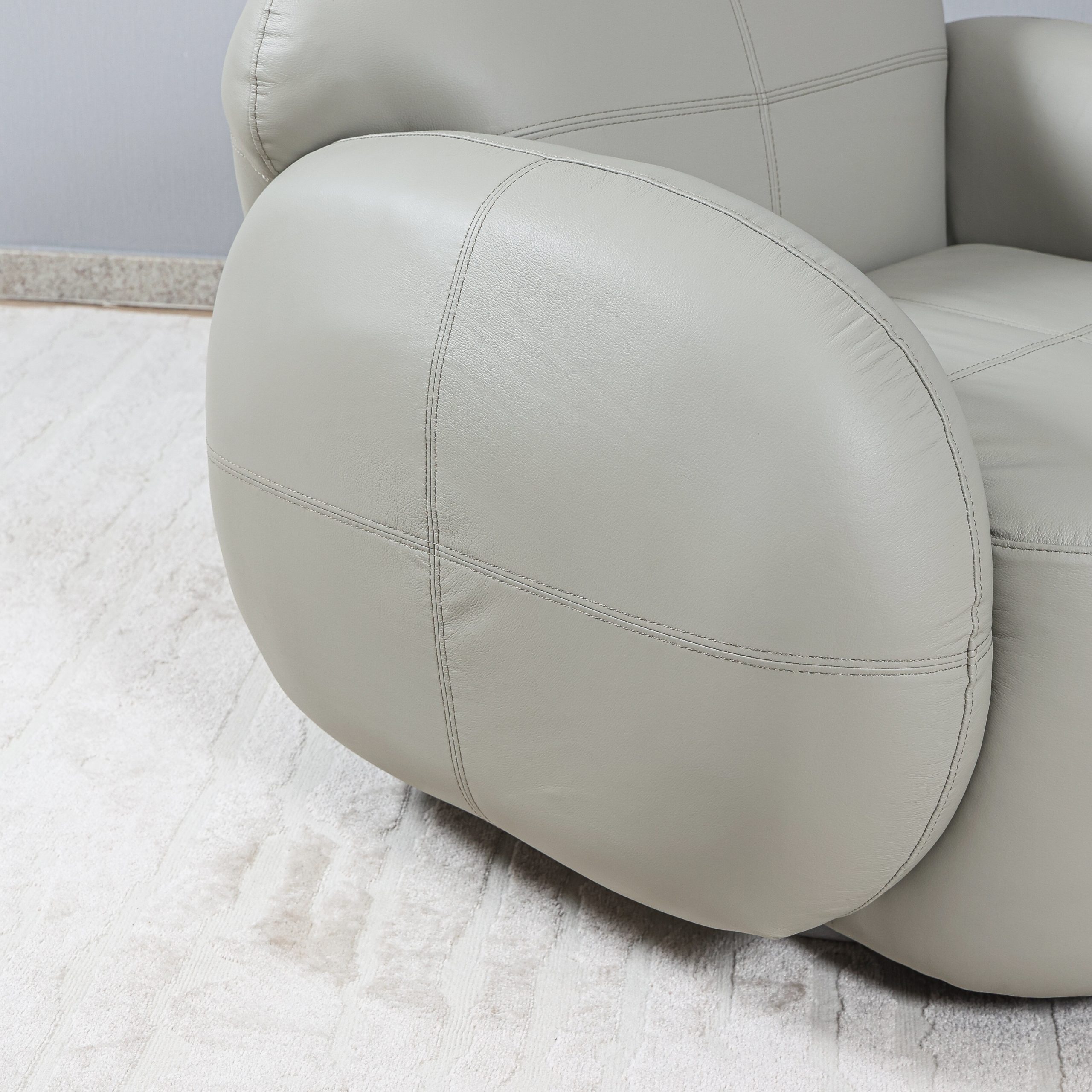 • Encosto com recortes pespontados, fixo e arredondado;