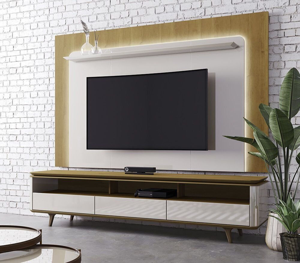 Rack 3 Gav Com Painel Arc 2,20Mts Off White/Nature