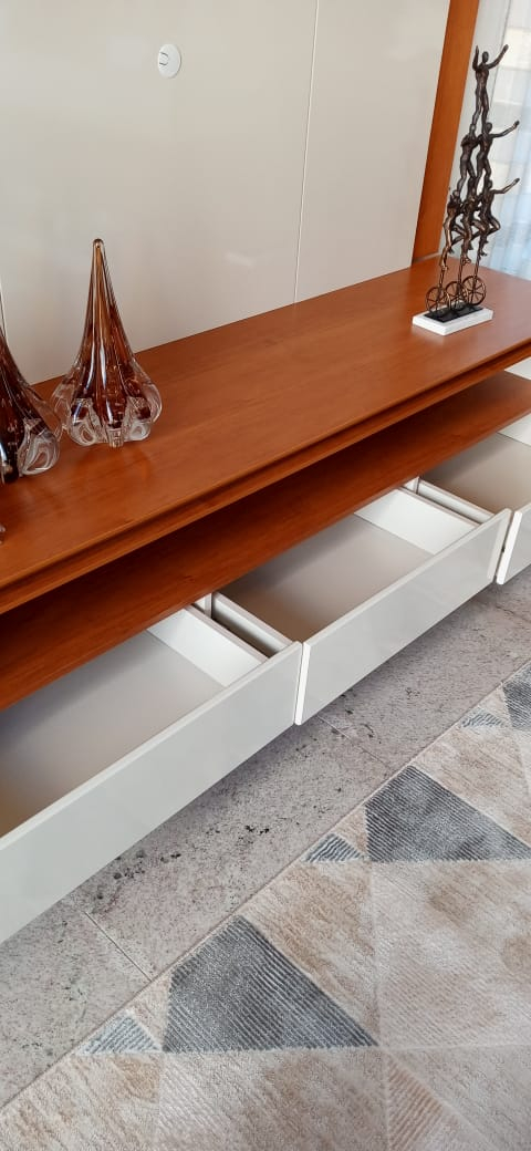 Cantos do rack com curvas em MDF laqueado