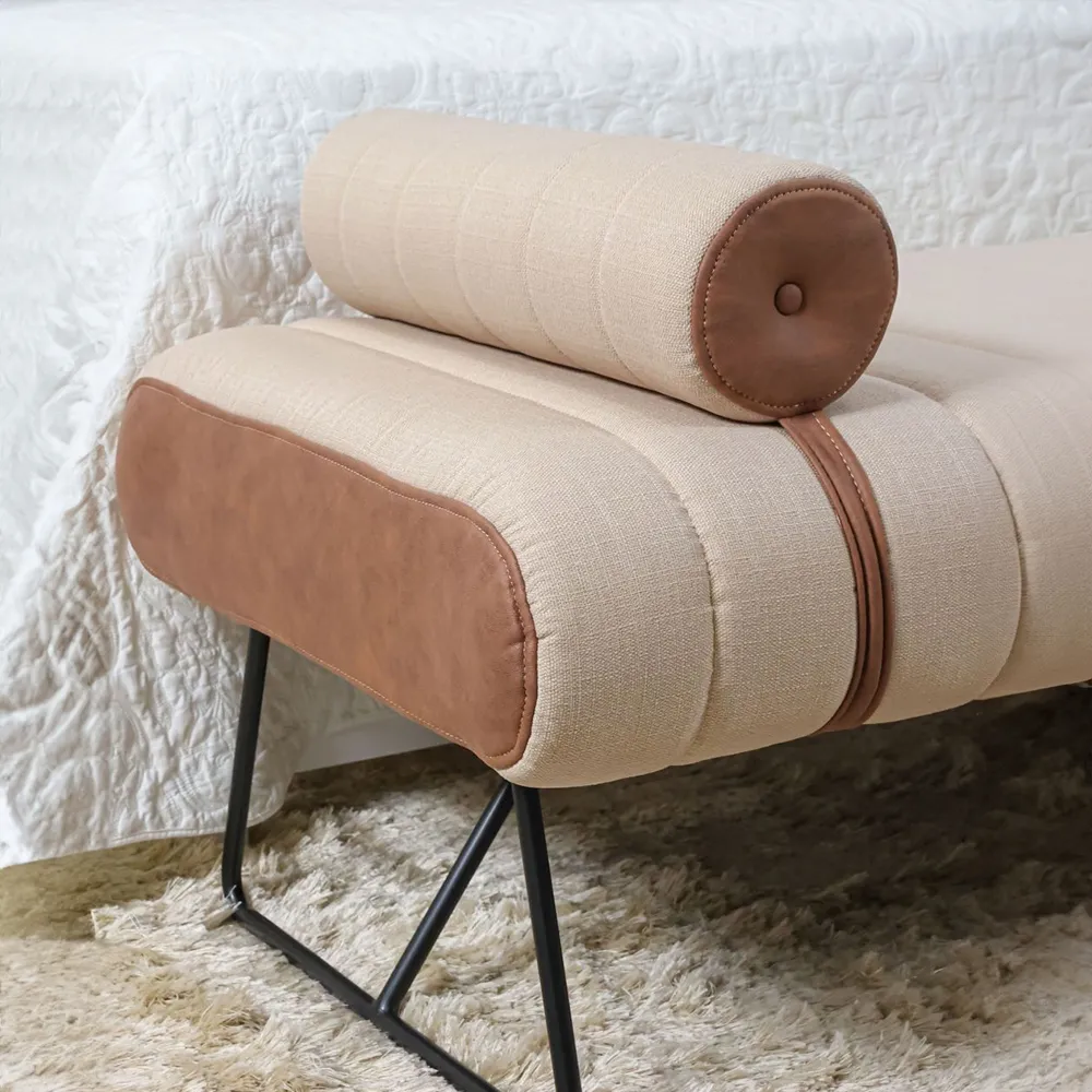 Assentos com espuma de 7 cm de espessura com pespontos formando gomos