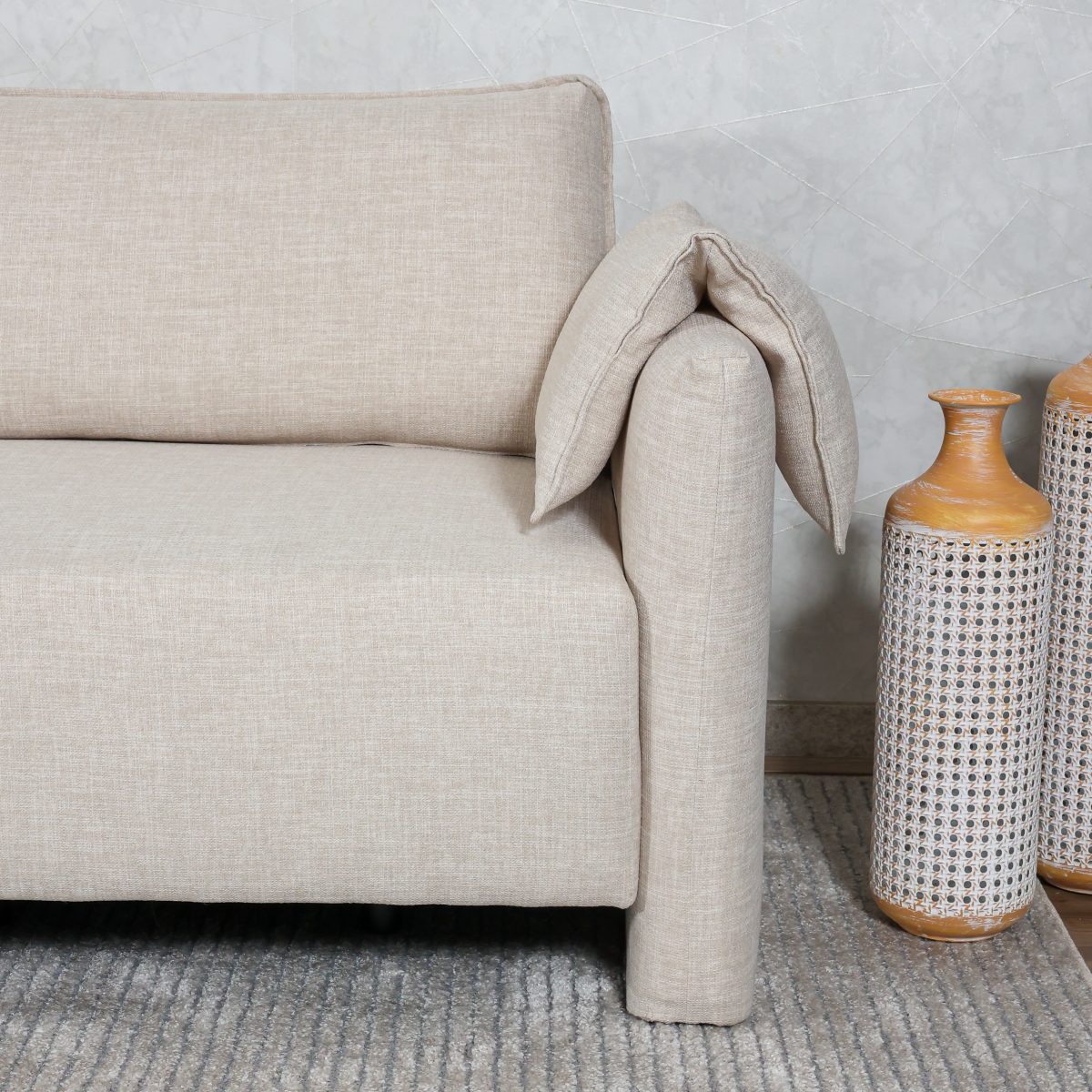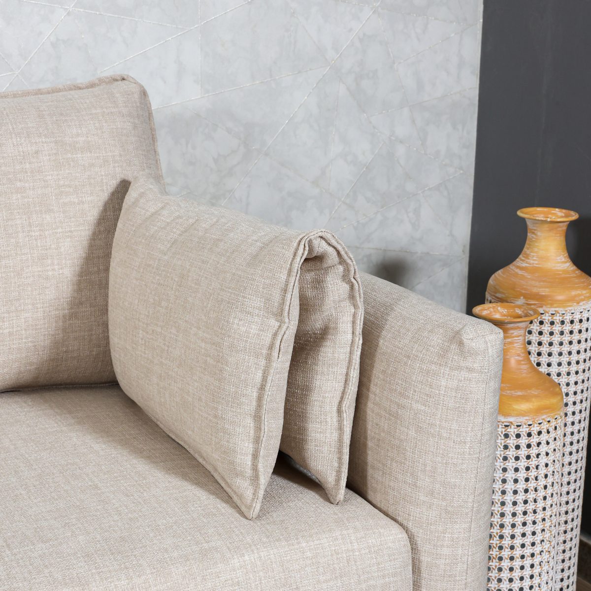 • Encosto – Fixo, com almofadas soltas preenchidas 100% com fibra siliconada;